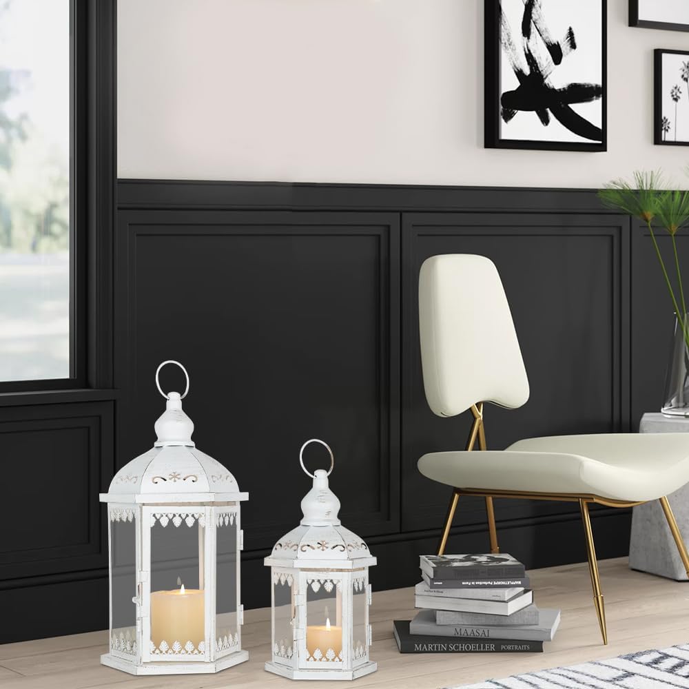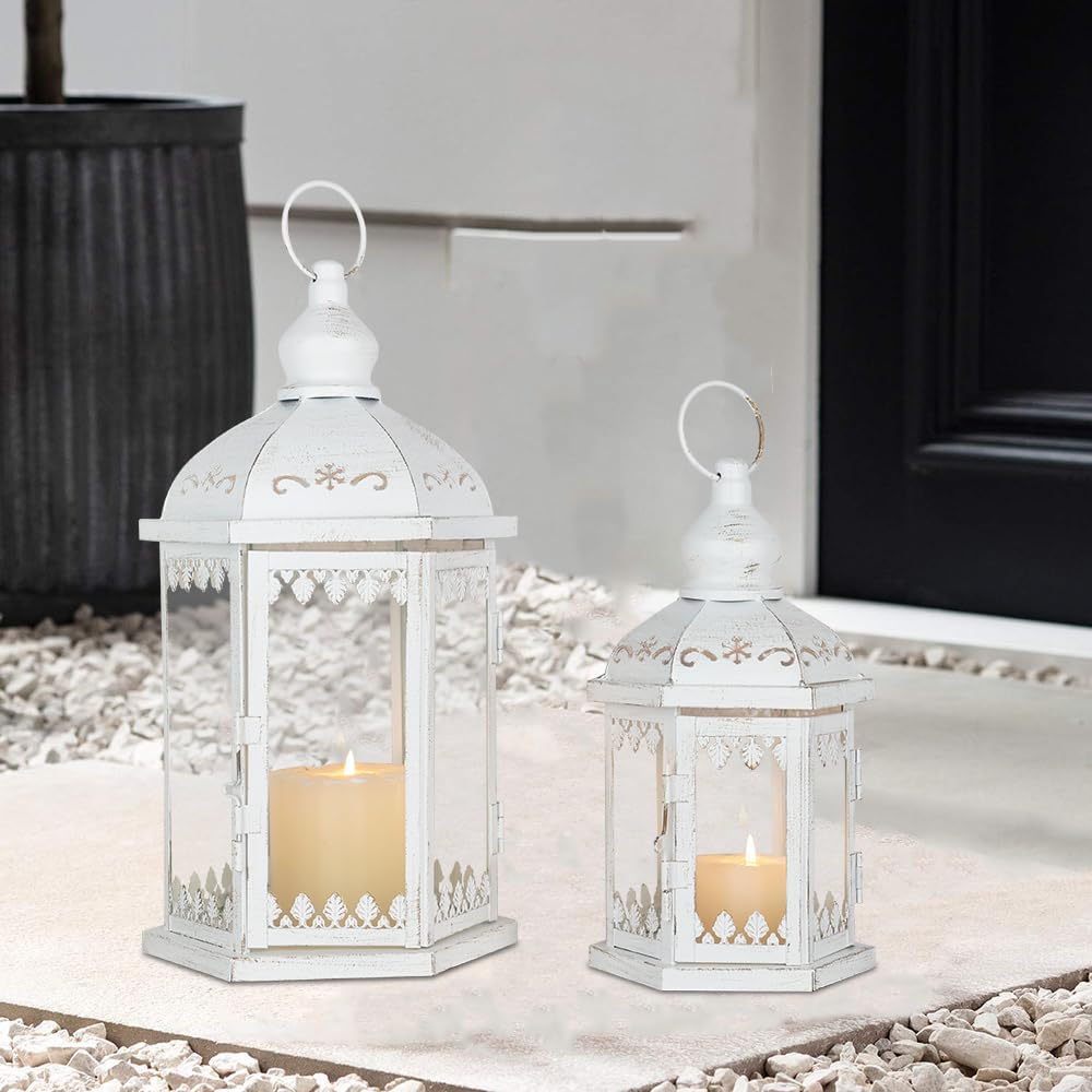 Introducing our stunning Set of 2 Decorative Lanterns, the perfect addition to your indoor or outdoor space! Crafted from durable white metal with elegant glass panels, these lanterns are designed to bring a touch of charm and warmth to any setting.