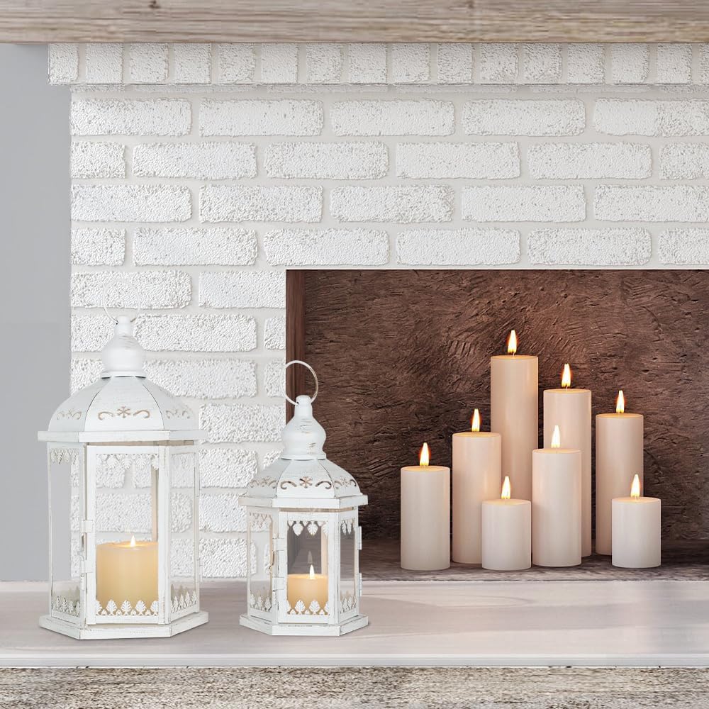 Whether you're looking to create a cozy ambiance on your porch, patio, garden, balcony, or even as a centerpiece for your wedding or special event, these lanterns are versatile and stylish. The set includes two sizes - a 15" lantern and an 11" lantern, allowing you to mix and match or use them separately to suit your decor needs.
